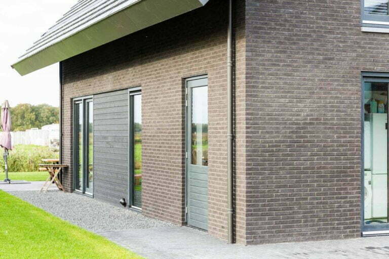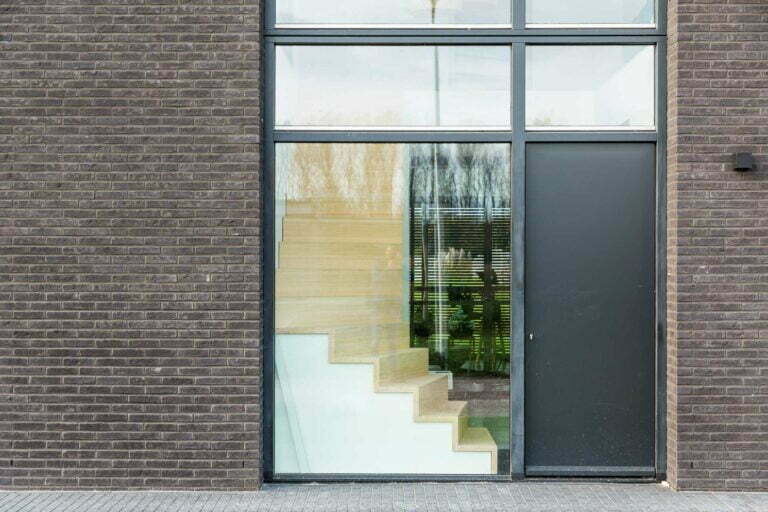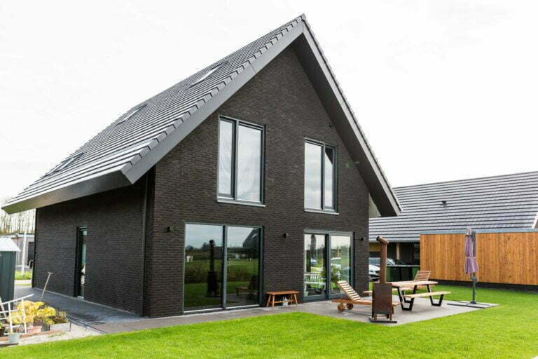 Deze moderne woning heeft een donkere, strakke afwerking aan de buitenzijde en veel glas voor extra licht binnen in de woning. De opvallende voorgevel met de open trap weerspiegelt de wensen van de opdrachtgever voor een stijlvolle woning.